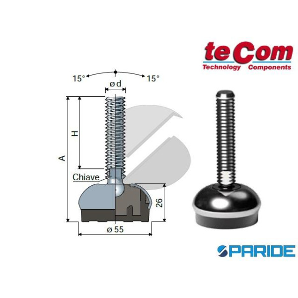 PIEDE SNODATO D 50 MM M10X95 15 TECOM ZINCATO Piede snodato con base in poliammide rinforzata con stelo in acciaio zincato serie 15 Tecom. Caratteristiche: Piede con base in p..
