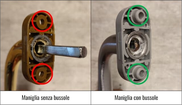 1) Osserva la parte posteriore della maniglia e verifica se sono presenti quelle che vengono chiamate "bussole".