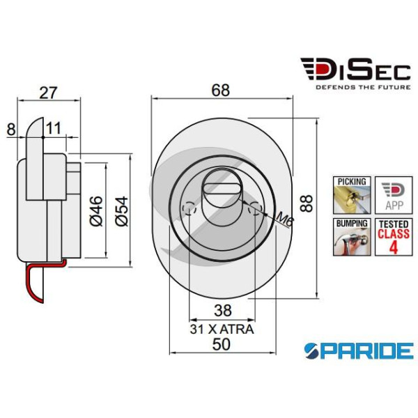 - Interasse fori di fissaggio M6 31 mm (per serrature modello Atra).