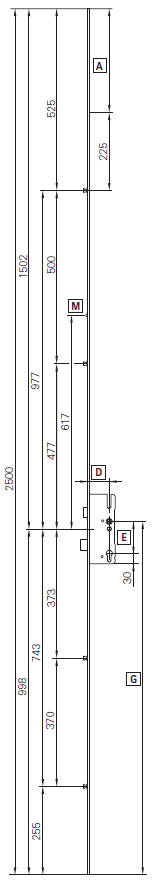 Frontale larghezza 16 mm, altezza 2500 mm (accorciabile di 300 mm)