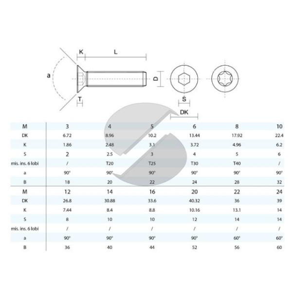 Vite a testa svasata piana con esagono incassato inox M8X90 mm.
