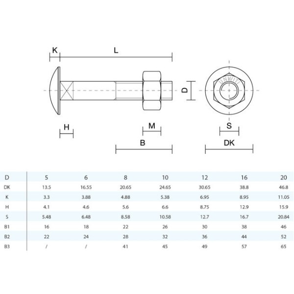 Vite TTDE inox M10X60 mm testa tonda con esagono sotto-testa.