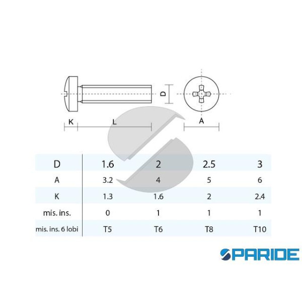 VITE TC ZINCATA 4.8 2,5X16 MM CROCE DIN 7985 ISO 7045 UNI 7687