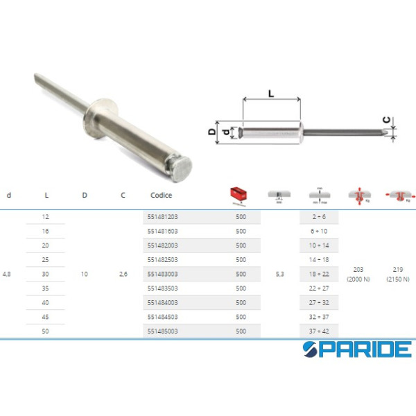 | 20939 | | RIVETTO ALLUMINIO GRAF 4,8X30 A STRAPPO | SU RICHIESTA | 0,10€ |