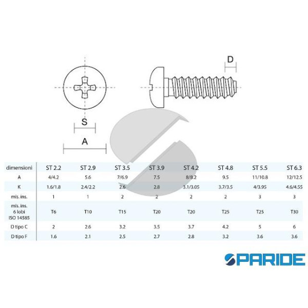 VITE AUTOFILETTANTE TC ZINCATA 3,9X16 MM DIN 7981 ISO 7049 UNI 6954.