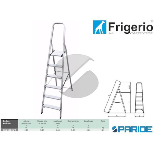 CODICE SCALA DRITTA IN ALLUMINIO PORTATA 150 KG FRIGERIO CARPENTERIE: SCA 680N/10