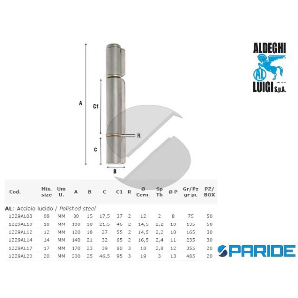 Cerniera serie 1228 a saldare a 2 ali per porte e cancelli in ferro Aldeghi linea acciaio