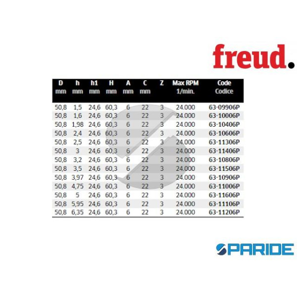 FRESA HM ALTEZZA FRESATA 2,4 MM 63-10606P PER INCASTRI LEGNO FREUD.